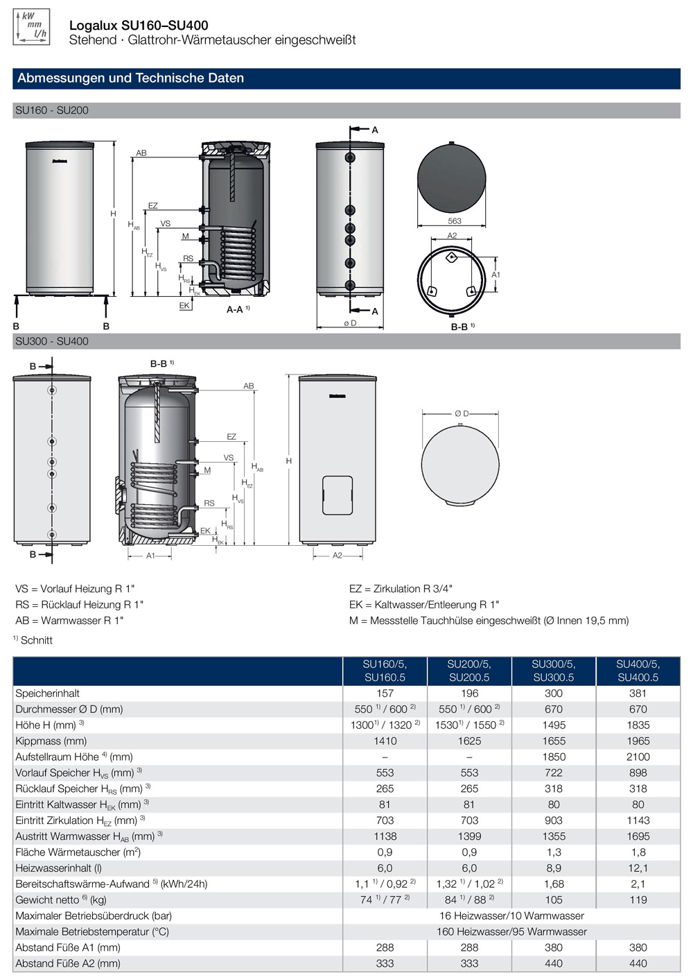 Warmwasserspeicher Logalux SU 120/5, 160/5 oder 200/5 Serie
