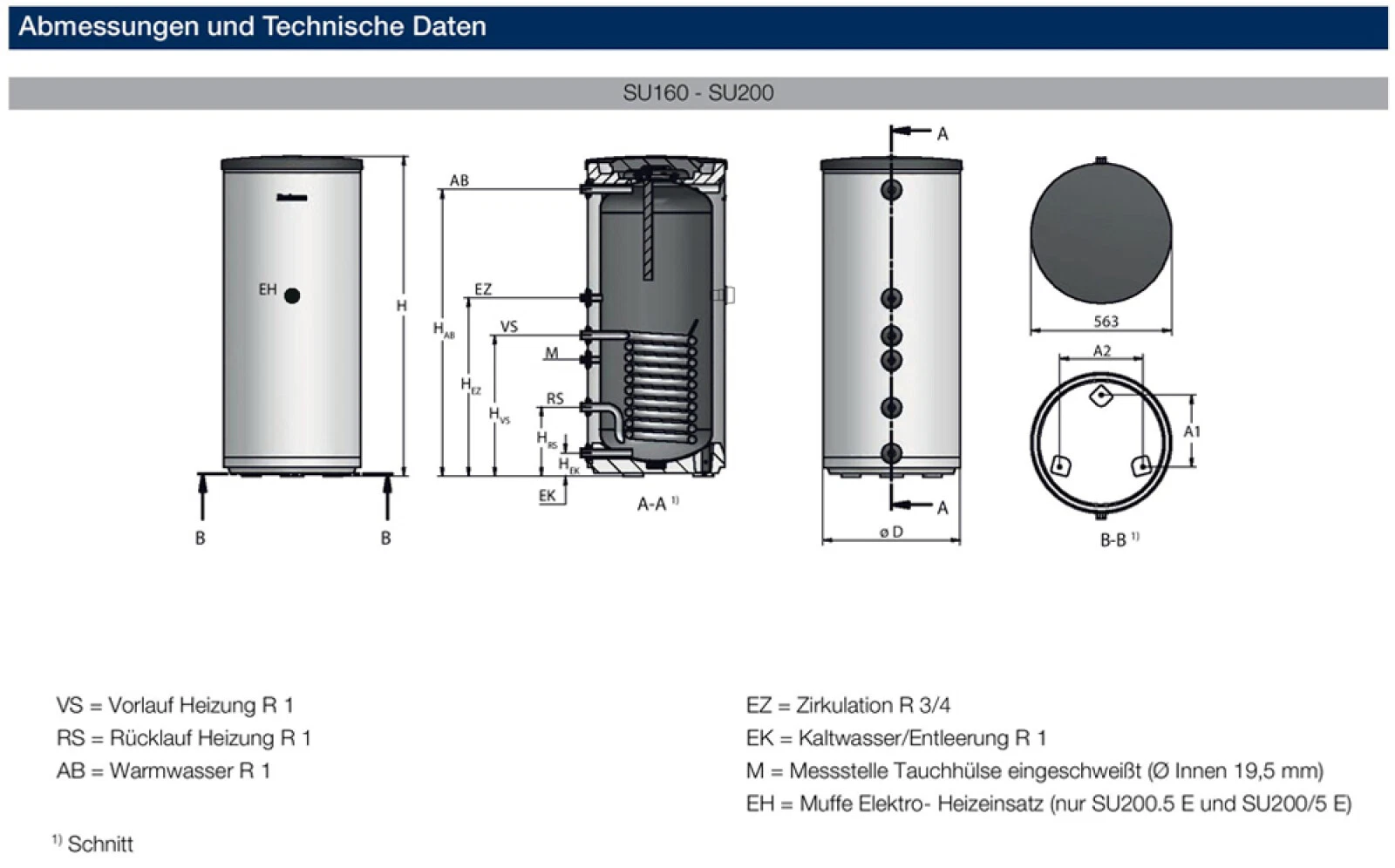 Nur Logalux SU200-E und 300 ist mit einer Muffe mittig für Heizstab ausgestattet.