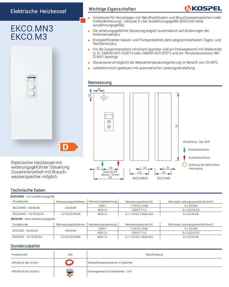 Alle Elektro-Kessel der Reihe: EKCO.M3/MN3 ver.2