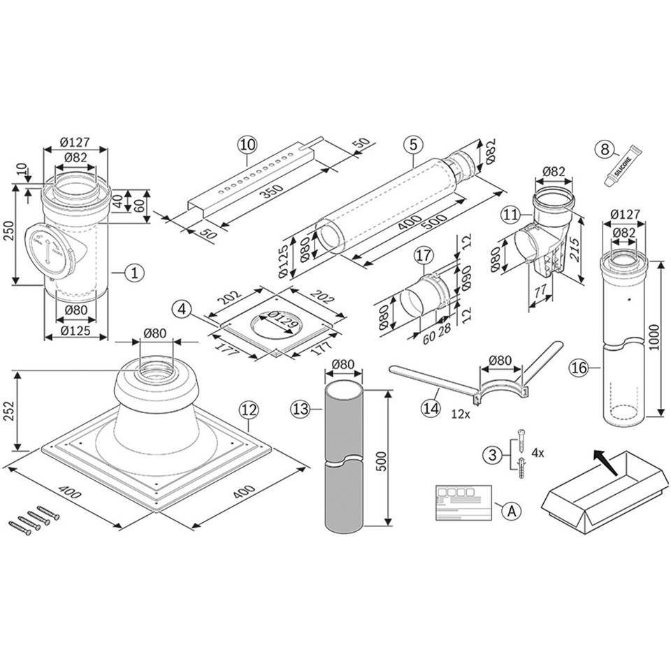 Set Abgasrohre DN80 bestehend aus: