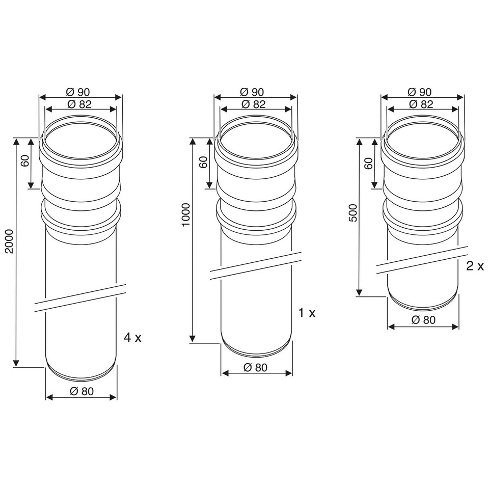 – 5 x Rohr DN80 1950 mm